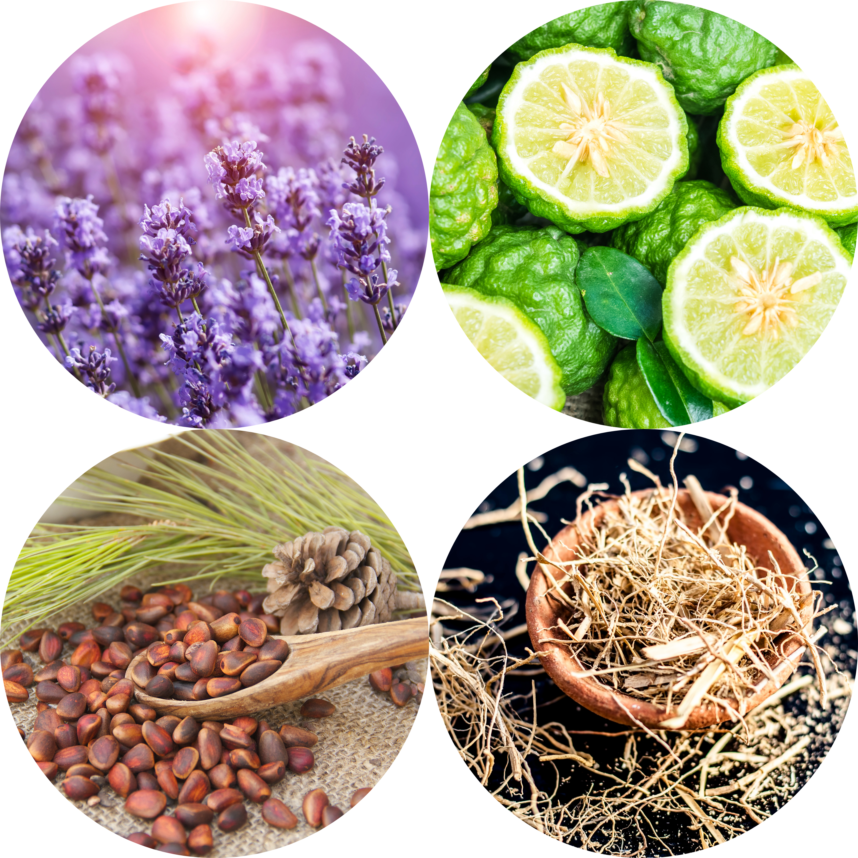 Lavender, Bergamot, Cedarwood, and Vetiver create a calming aroma that helps reduce stress and anxiety, promoting relaxation.