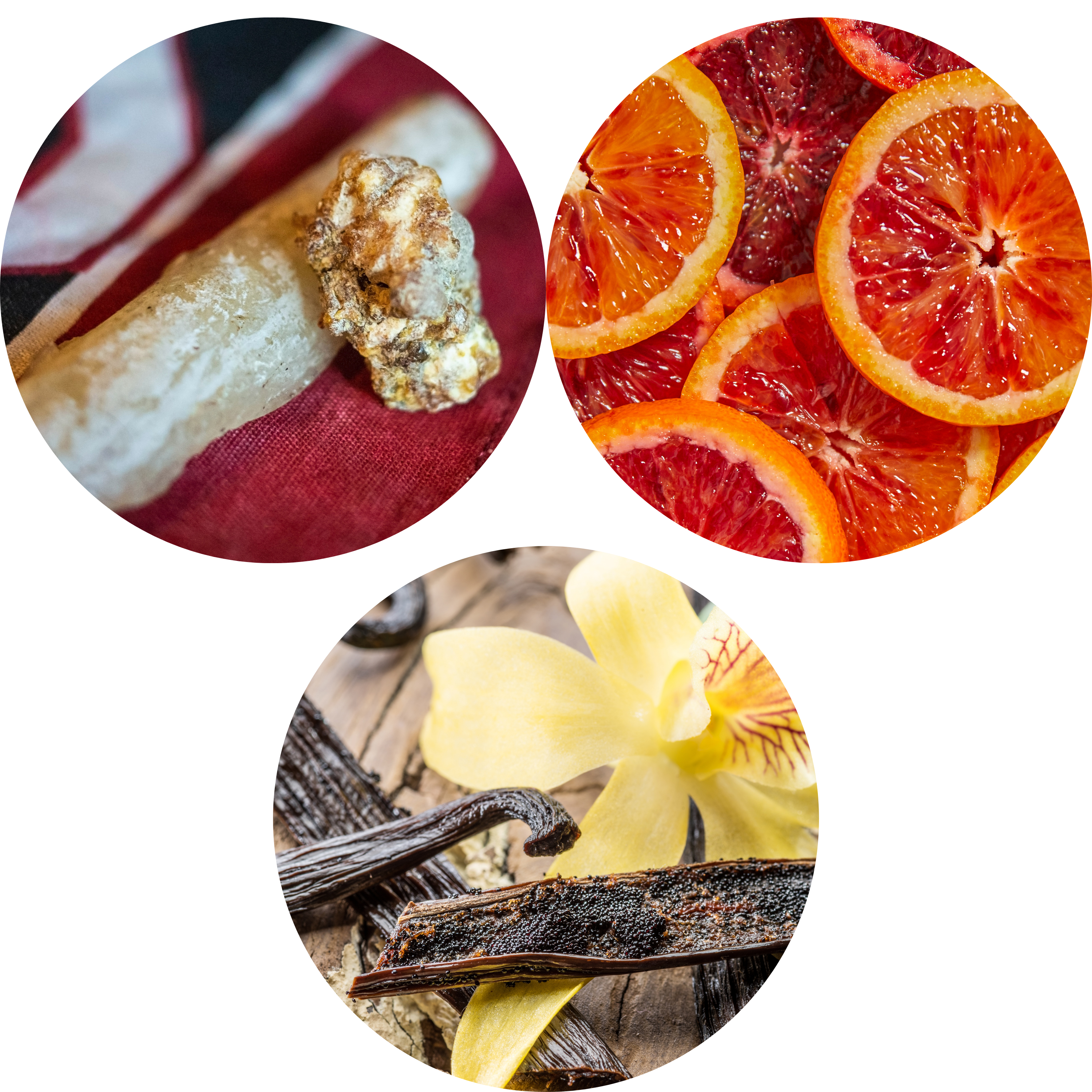 Copaiba Resin, Blood Orange Peel Oil, and Vanilla Fruit Tincture calm the skin with their anti-inflammatory and soothing properties.